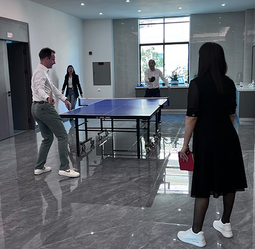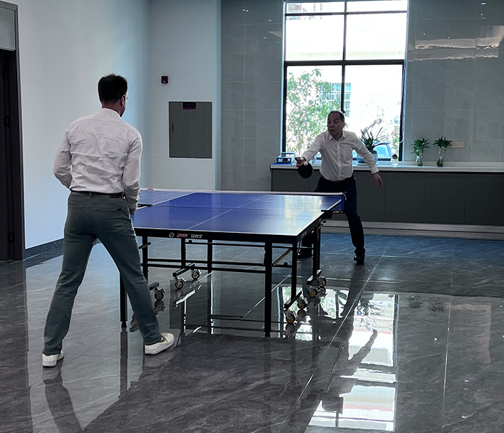 上图是2025年客户来访打乒乓球现场