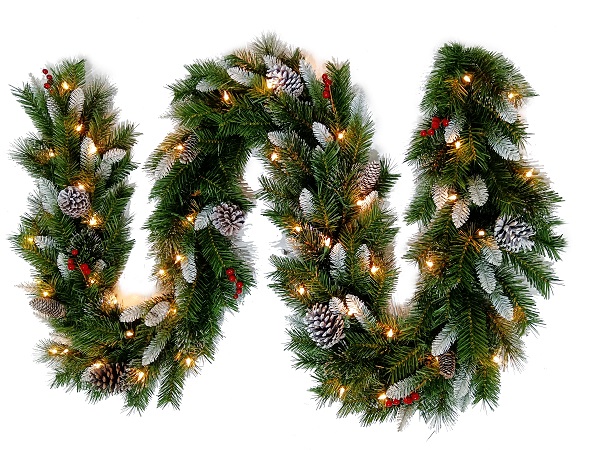 产品名称:9英尺带松果松针喷白藤条