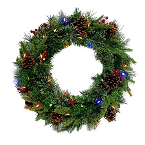 24 inch with multi-color lights+pine cones +red berries+PE+pine needles+PVC mixed wreath